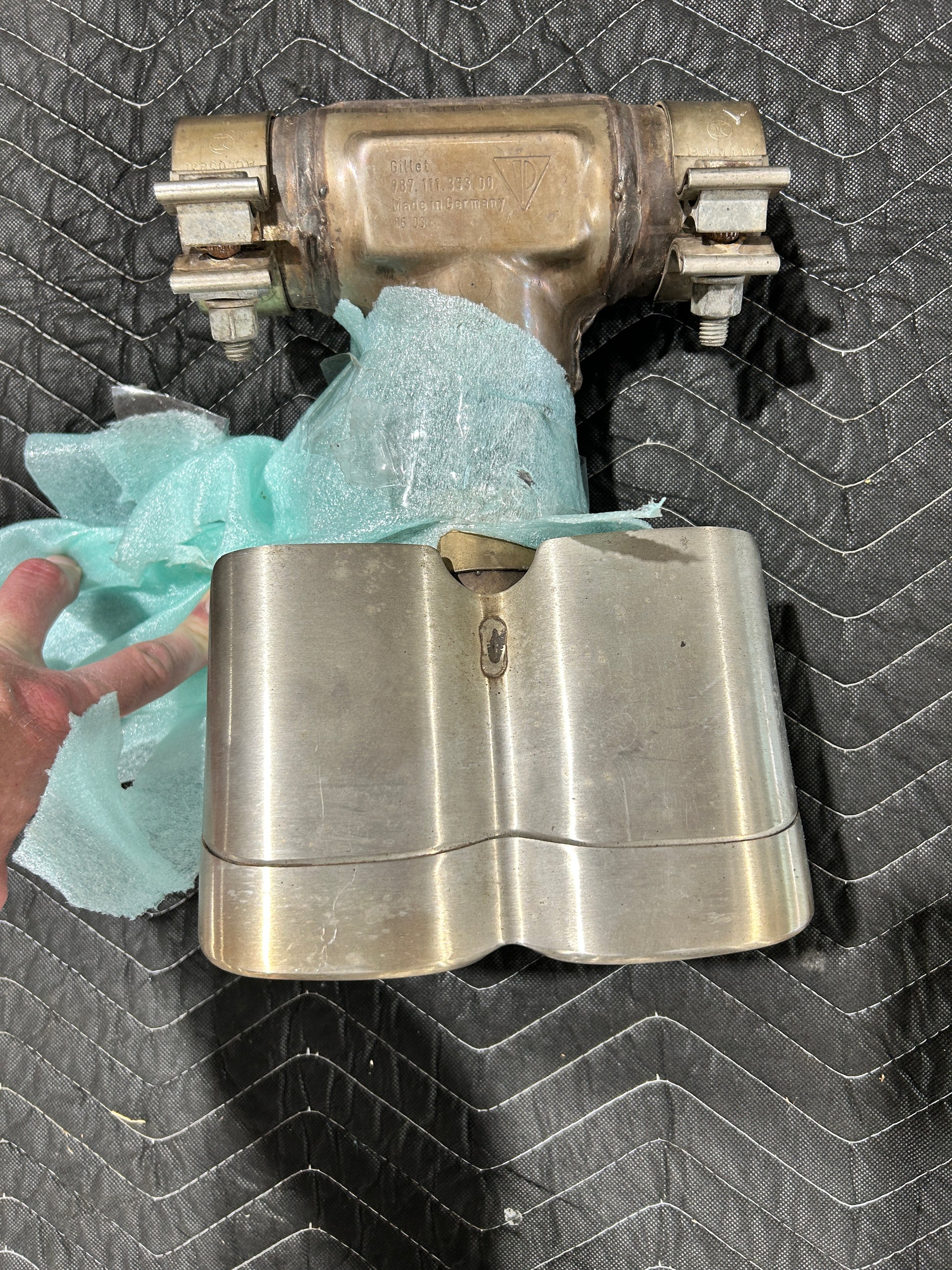 Cayman 986.1 Factory OEM Exhaust Mufflers and Tip. These parts were removed with under 30K miles on the vehicle. What is pictured is what you get. $900
